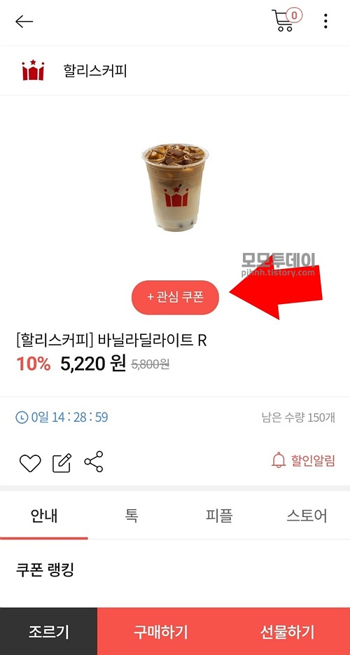 저는 일단 할리스 커피에서 바닐라 딜라이트 쿠폰을 구매해봤는데요! 때마침 할리스 바닐라 딜라이트가 10% 할인을 하고 있더라구요~~