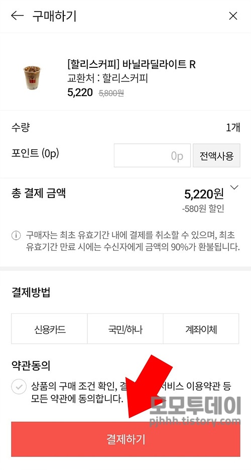 여기서 스크롤을 쭉 내리면 결제할 내역이 나오는데요~ 하단에서 [결제하기]를 눌러 결제를 하면 끝!