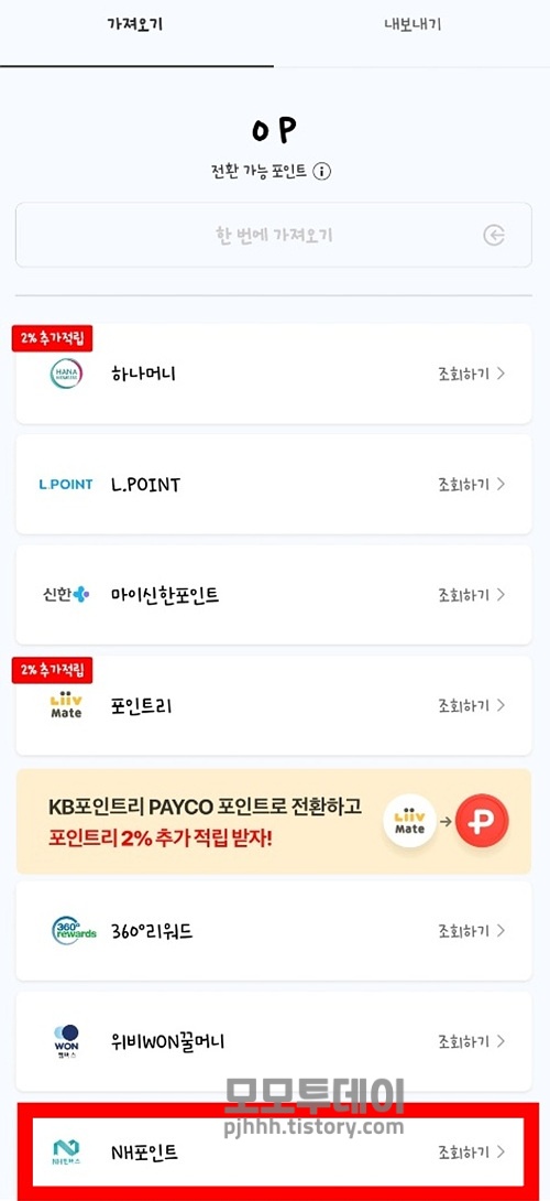 페이코 포인트로 전환은 nh 포인트 외에도 하나머니, 롯데 엘포인트, 마이 신한 포인트, 국민 포인트리, 우리 위비 꿀머니 등이 가능합니다.