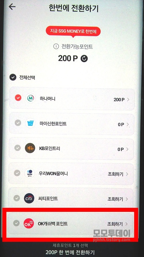 1. ok캐쉬백을 신세계 포인트로 전환하기
